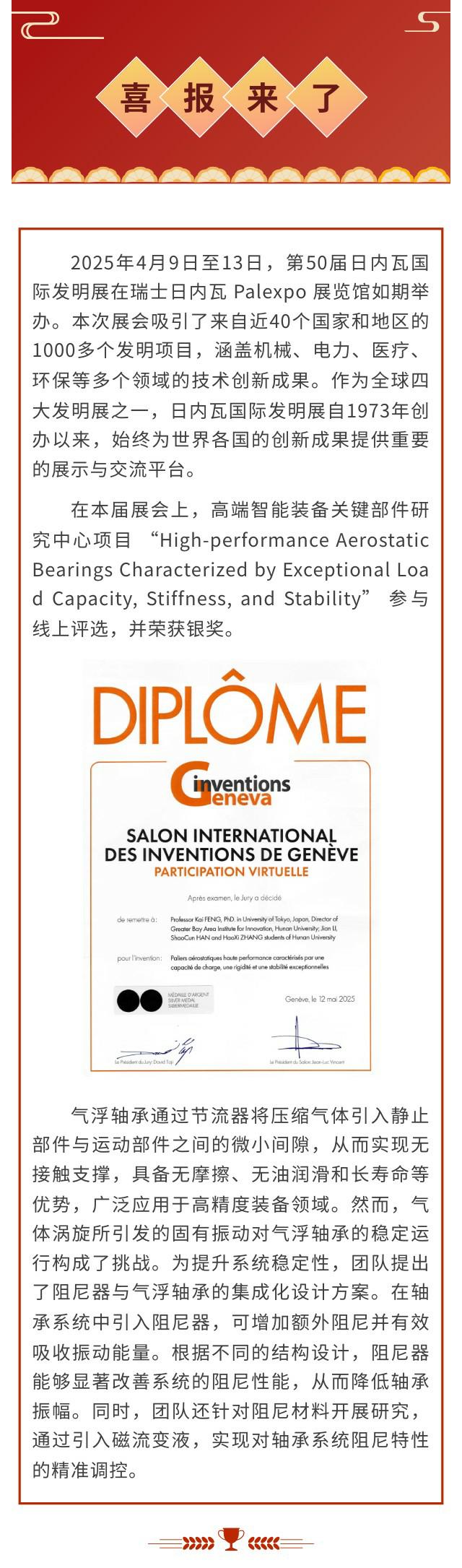 喜报|日内瓦国际发明展获银奖